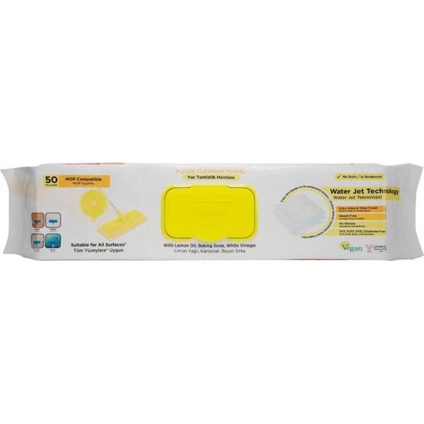 Благодаря специальной формуле с пищевой содой, уксусом и маслом лимона салфетки эффективно очищают разные типы полов, не оставляя следов и разводов. Они имеют большой размер и рельефную текстуру, отличаются прочностью, устойчивостью к разрывам и не требуют смывания. Салфетки можно крепить к плоской платформе швабры или использовать вручную.