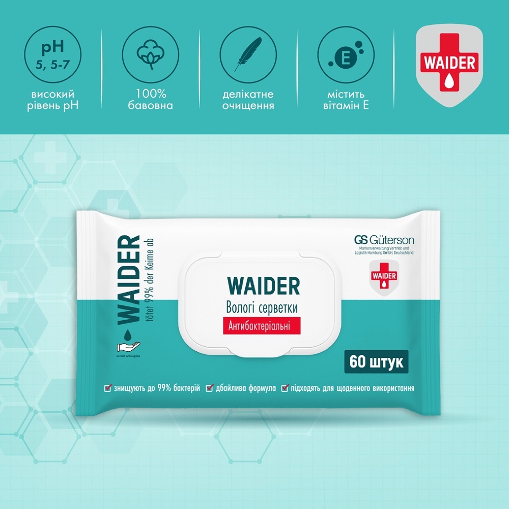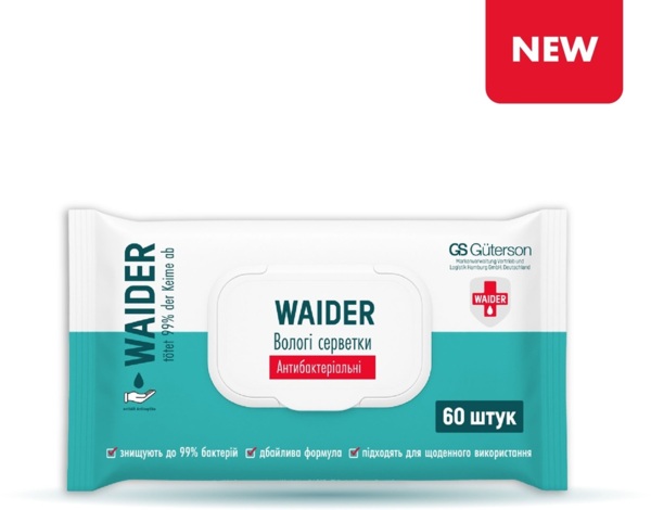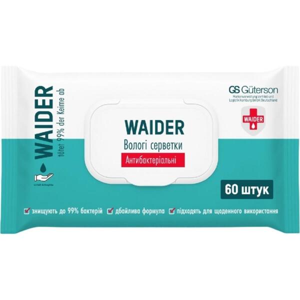 - Влажные салфетки Waider антибактериальные 60 шт