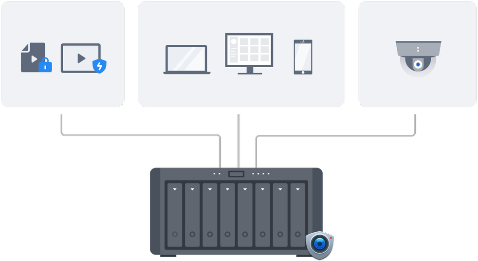 Защищать бизнес никогда не было так просто благодаря централизованному управлению, поддержке более 8700 моделей IP-камер, а также удаленному наблюдению и воспроизведению. Масштабируемая система управления видео Synology предоставляет все необходимые инструменты для отслеживания в реальном времени, изучения отдельных случаев, управления и резервного копирования.