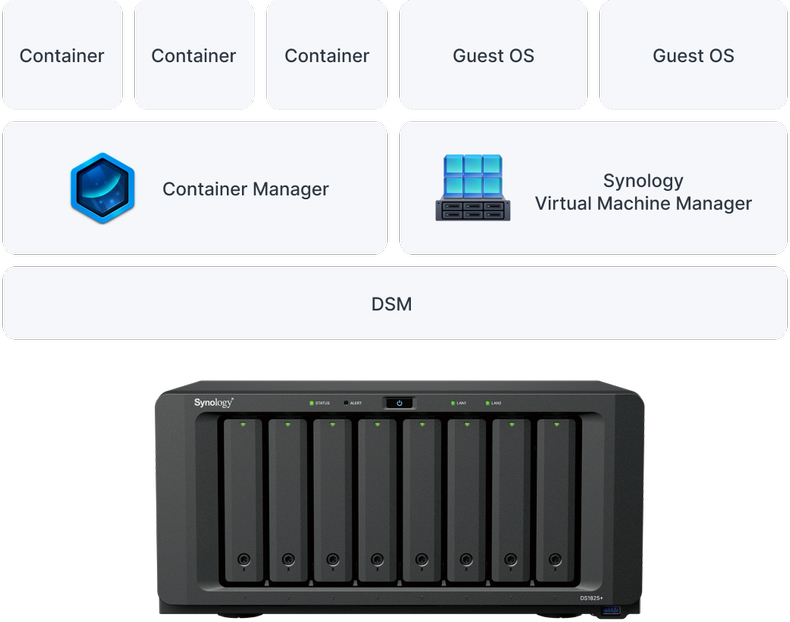 Создайте универсальную среду, поддерживающую контейнеры Docker и виртуальные машины, для тестирования и оценки приложений. Для тестирования пакетов и безопасности Virtual DSM выступает в качестве выделенной тестовой среды, обеспечивая изоляцию между приложениями, системами и данными.