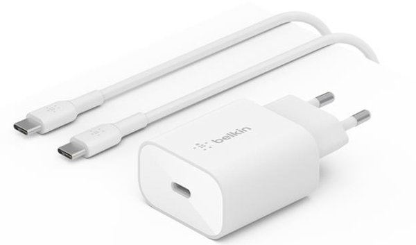 Сетевое зарядное устройство Belkin 25Вт USB-С PD PPS, M PVC C-С CABLE White (WCA004VF1MWH-B6)
