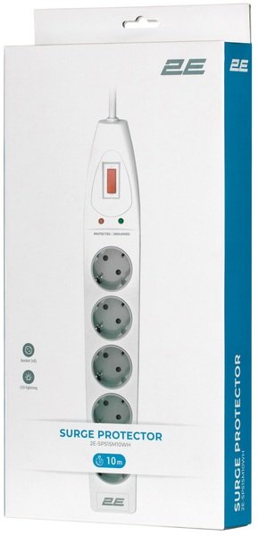 - Сетевой фильтр 2E 5XSchuko 3G*1.5мм, 10м, White (2E-SP515M10WH)