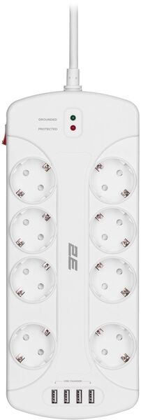 Сетевой фильтр 2E 8XSchuko 3G*1.5мм, 4*USB-A, 3м, White (2E-SP815M3USBWH)
