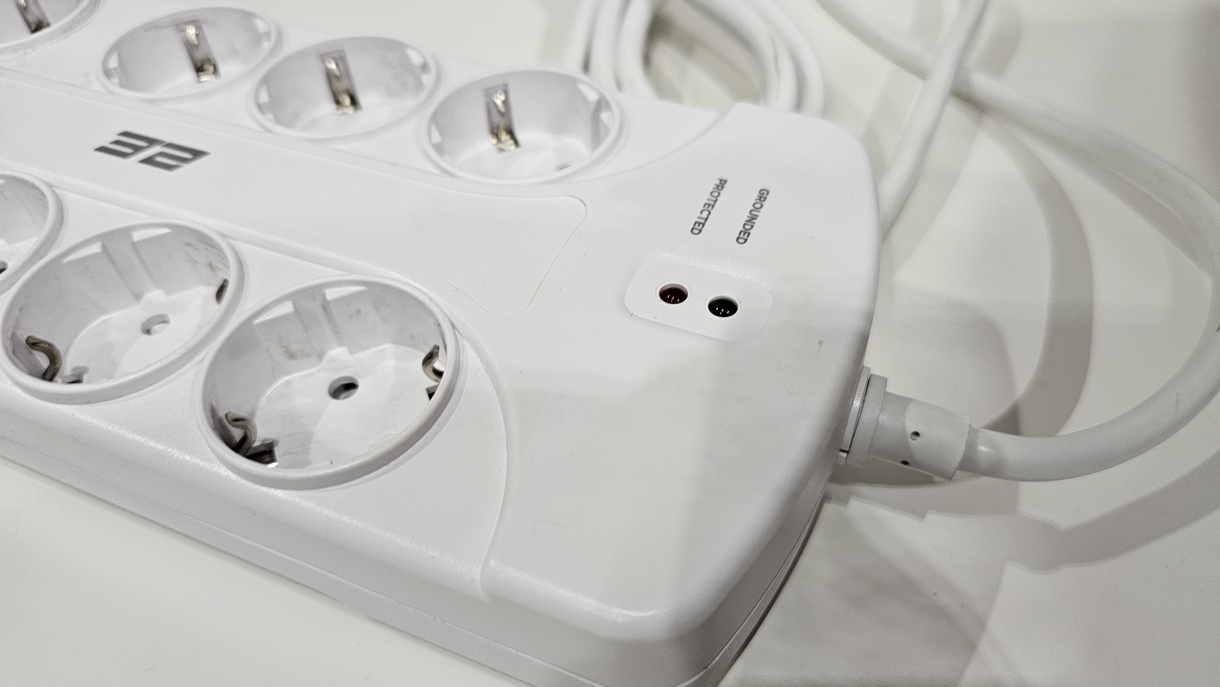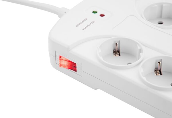 Оснащен автоматическим выключателем, который при возникновении замыкания или скачка напряжения, автоматически отсоединит устройства от цепи. Выключатель работает почти бесшумно, поэтому при использовании не потревожит сон ваших близких. На фильтре имеется два индикатора LED: индикатор заземления и защищенности сети. Устройство имеет защиту от детей в виде защитных шторок. Розетки на фильтре расположены под углом 45 градусов, поэтому вилки устройств не будут мешать друг другу.