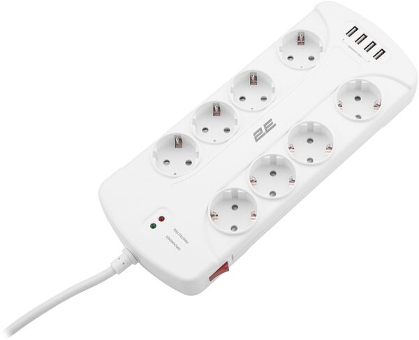 Сетевой фильтр 2E SP815 на 8 розеток с четырьмя разъемами USB-A без преувеличения может послужить настоящим хабом по подключению к сети. Он может быть актуален в том случае, когда одновременно нужно подключить до 8 устройств, а розетка только одна. Все подключенные устройства будут защищены от внезапных всплесков напряжения или перегрузки. Функцию защиты в сетевом фильтре выполняет панель с легко плавным варистрором, который в случае скачка напряжения или перегрузки плавится и разъединяет цепь питания.