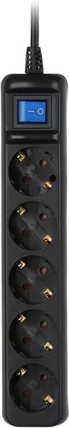 Сетевой удлинитель 2Е 5XSchuko с выключателем 3G*1.5мм 5м Black (2E-U05ES15M5BK)