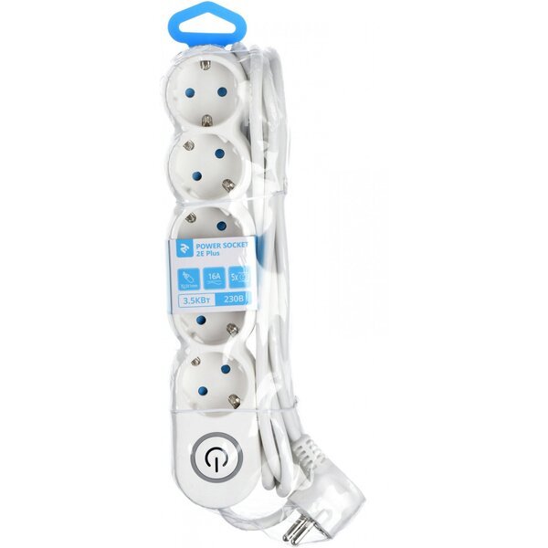 Сетевой фильтр 2Е Plus на 5XSchuko розетки. Тип F (евророзетка) с заземлением, с выключателем, со шторками для защиты детей. Особый дизайн. Подсветка кнопки включения - синим.
