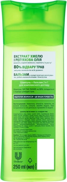 - Шампунь Чистая Линия Хмель и репейное масло 250мл