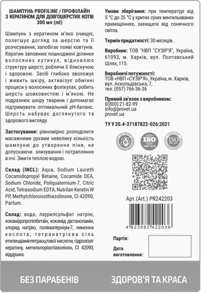 - Шампунь для длинношерстных котов ProVET Profiline с кератином 300мл