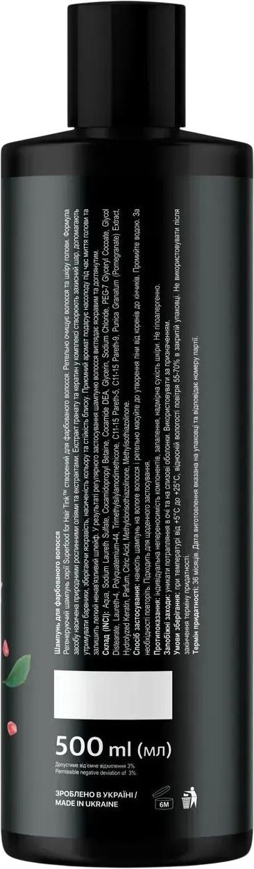 Регенерирующий шампунь серии Superfood for Hair Tink создан для окрашенных волос. Тщательно очищает волосы и кожу головы. Формула средства обогащена натуральными растительными маслами и экстрактами. Экстракт граната и кератин в комплексе создают защитный слой, помогают удерживать красящие вещества, сохраняя яркость, насыщенность цвета и стойкость блеска. Приятный аромат подарит наслаждение во время мытья головы и оставит легкий ненавязчивый шлейф. В результате регулярного применения шампуня волосы выглядят яркими и ухоженными.