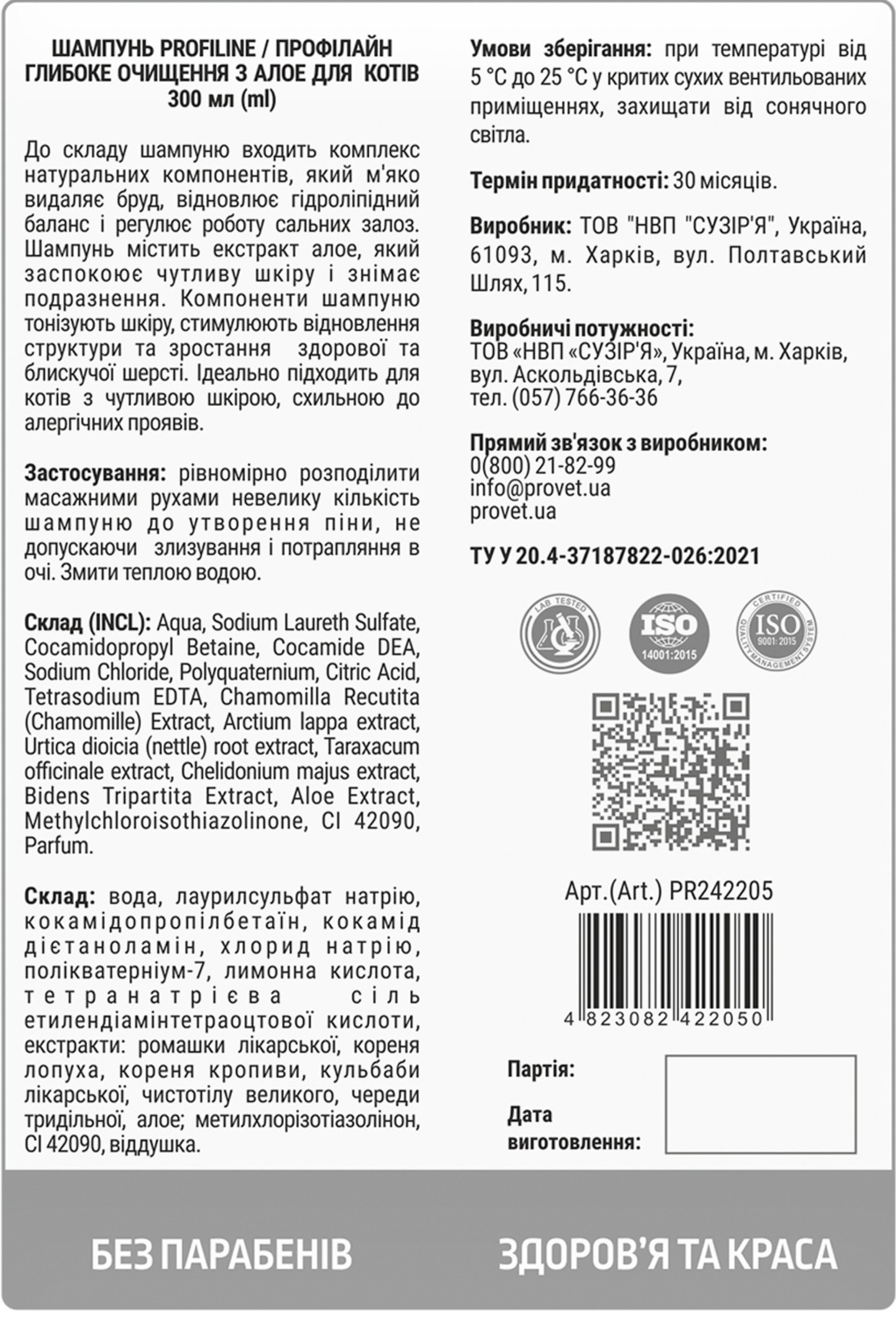 ТУ У 20.4-37187822-026:2021. Сертификат ISO 9001:2015.