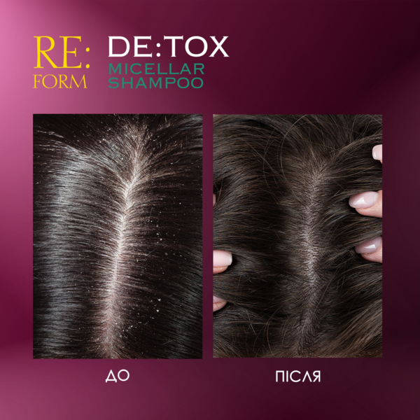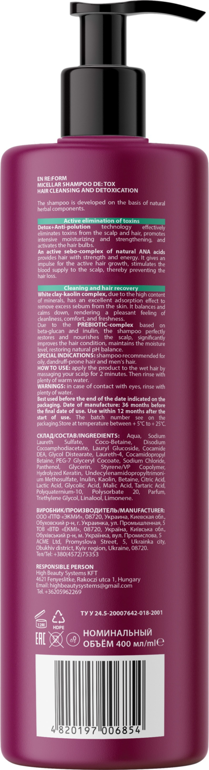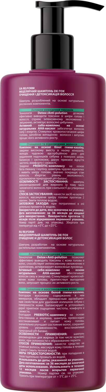 - Шампунь для волос Re:Form De:tox Мицеллярный 400 мл