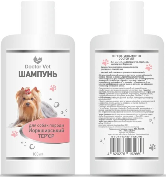 - Шампунь Doctor Vet для собак породы йоркширский терьер 100 мл