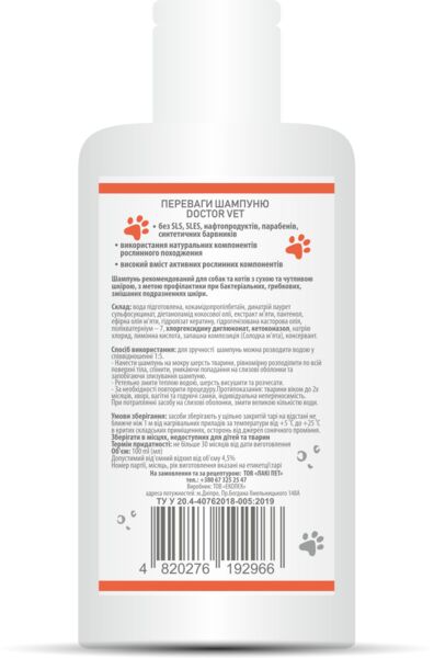 Шампунь Doctor Vet с хлоргексидином и кетоконазолом 100 мл