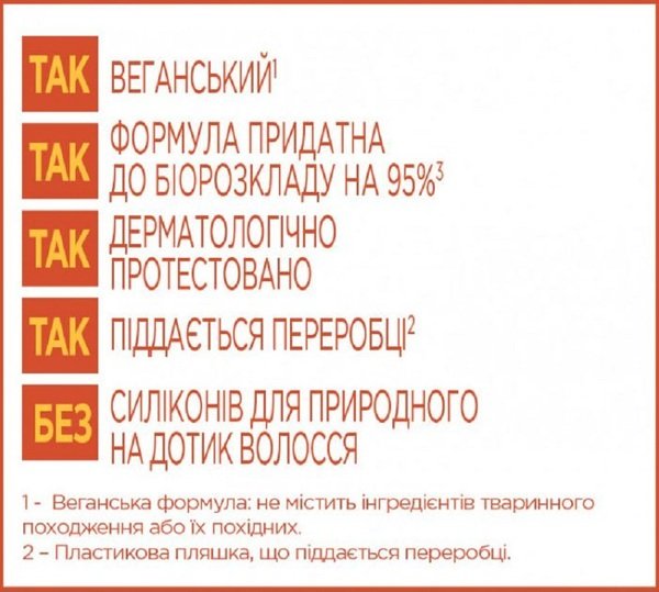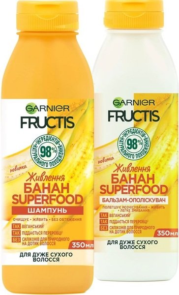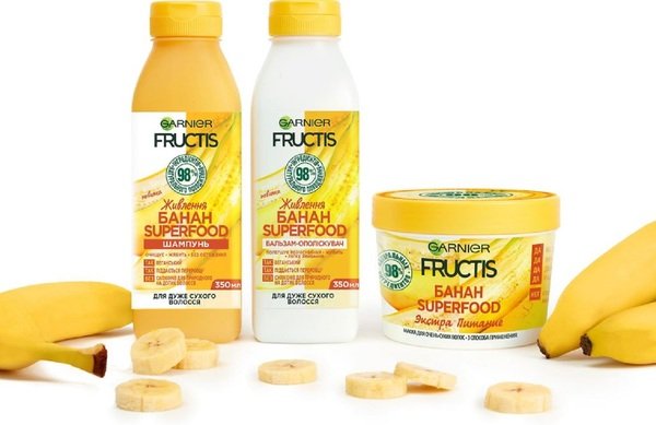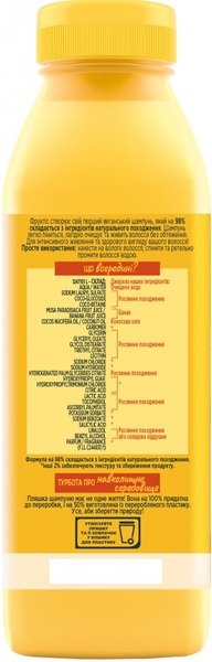 Шампунь легко пенится, мягко очищает и питает волосы без отягощения. Банан и растительные масла обеспечивают волосам интенсивное питание и увлажнение. После применения волосы очищенные, более мягкие, гладкие и блестящие. Не содержит силиконы, искусственные красители, ингредиенты животного происхождения или их производные. Веганский шампунь с формулой, пригодной к биоразложению, на 96% состоит из ингредиентов натурального происхождения. Остальные 4% – ингредиенты, обеспечивающие текстуру и хранение продукта.