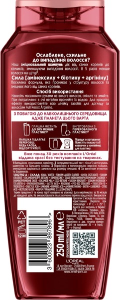 Шампунь L'Oreal Paris Elseve Аргинин+Аминексил для ослабленных волос 250мл