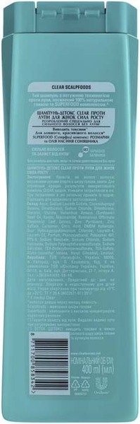 Шампунь против перхоти Clear Детокс Сила роста 400мл
