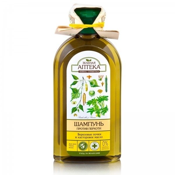 Шампунь Зеленая аптека против перхоти "Березовые почки и касторовое масло", 350 мл. - 0% парабенов, силиконов, красителей