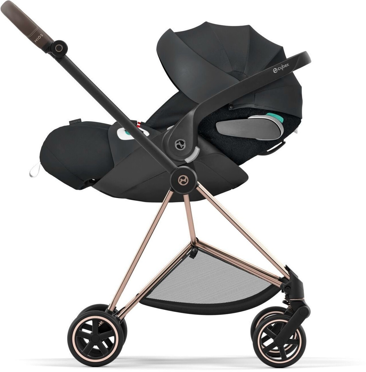 Процесс складывания шасси Cybex Mios максимально упрощен: всего одной рукой конструкция превращается в компактную «книжку». В сложенном виде коляска самостоятельно стоит без опоры, что очень удобно для хранения в квартире или кафе. Она без труда помещается в багажник любого автомобиля, а специальный фиксатор и ручка для переноски гарантируют, что шасси не разложится в неподходящий момент, это значит, что транспортировка будет максимально комфортной.