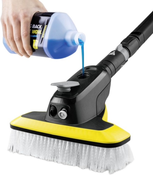 Моечная щетка «3в1» WB 7 Plus позволяет выполнять три важные функции: нанесение пены, удаление стойких загрязнений струей высокого давления или тщательная и в то же время бережная очистка мягкой щеткой. Все это может производиться без замены принадлежностей. Требуемая функция просто выбирается рычажком, установленным на рукоятке щетки. Благодаря этому моечная щетка обладает универсальными возможностями, экономит время, гарантирует комфортную работу и превосходный результат чистки – даже при обработке таких чувствительных материалов, как стекло, пластмасса или лакокрасочное покрытие. При этом встроенный бачок для чистящего средства обеспечивает продолжительную работу без дозаправки.