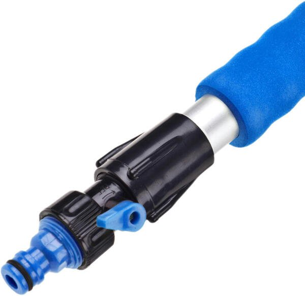 Для смывания моющего средства предусмотрен штуцер для подключения шланга. Щетка устойчива к воде, бытовой и автомобильной химии, падениям, ударам и другим негативным воздействиям.