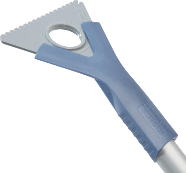 На одном конце алюминиевого кронштейна есть захват для льда, которым можно соскрести лобовое стекло, придав ему нужную форму. Скребок для льда шириной 10 см треугольной формы имеет в общей сложности шесть скребков, по два с каждой стороны. Скребок также имеет зубцы для льда для измельчения даже самого крепкого стального льда и канавку для очистки щеток стеклоочистителей.