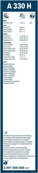 Характеристики Щетка стеклоочистителя Bosch A330H бескаркасная для заднего стекла 330мм (3397008006) (465222)
