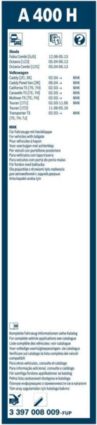 - Щетка стеклоочистителя Bosch A400H бескаркасная для заднего стекла 400мм (3397008009) (465223)