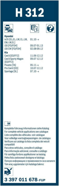 Описание Щетка стеклоочистителя Bosch H312 каркасная для заднего стекла 300мм (3397011678) (6900912636)