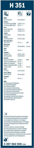 Щетка стеклоочистителя Bosch H351 каркасная для заднего стекла 350мм (3397004559) (6900260541)