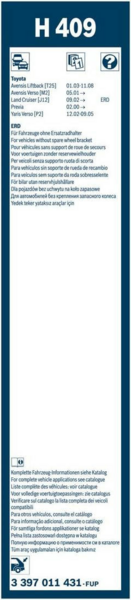 - Щетка стеклоочистителя Bosch H409 каркасная для заднего стекла 400мм (3397011431) (46581039408)