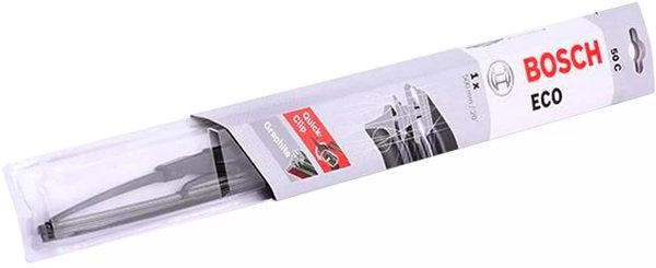 Автомобильные дворники серии Bosch Eco были выпущены легендарной компанией, как бюджетная линейка. Главное их преимущество заключается в невысокой цене и достойном качестве. Каркас дворника выполнен из металла высокого качества. Для защиты от коррозии, все металлические части стеклоочистителя покрыты двойным слоем порошковой краски. Особое внимание следует уделить резинке стеклоочистителя. Она сделана методом литья, из натурального каучука. Благодаря такому способу изготовления, лезвие получает идеальную рабочую кромку, на которой отсутствуют заусенцы и неровности. Резинка не вступает в реакцию с агрессивными компонентами омывателя лобового стекла, не пересыхает под воздействием солнечных лучей и высоких температур окружающей среды. Не трескается и не становится хрупкой на морозе. Для тихого и плавного скольжения дворника по стеклу, на лезвие нанесен тонкий слой графитового напыления, которое также защищает ее от агрессивного воздействия окружающей среды. Еще одной особенностью Bosch Eco является возможность замены резинки отдельно от всего механизма коромысел. Еще одной особенностью Bosch Eco является возможность замены резинки отдельно от всего механизма коромысел.