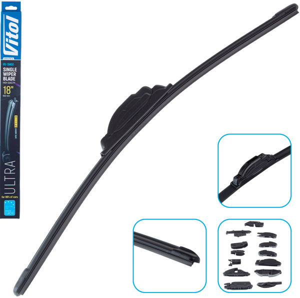 О надежности товаров vitol говорят более 20-летний опыт на рынке Украины и лояльные клиенты. Приобретая бескаркасную щетку стеклоочистителя vitol ultra 18, Вы будете готовы к любым вызовам автомира.
