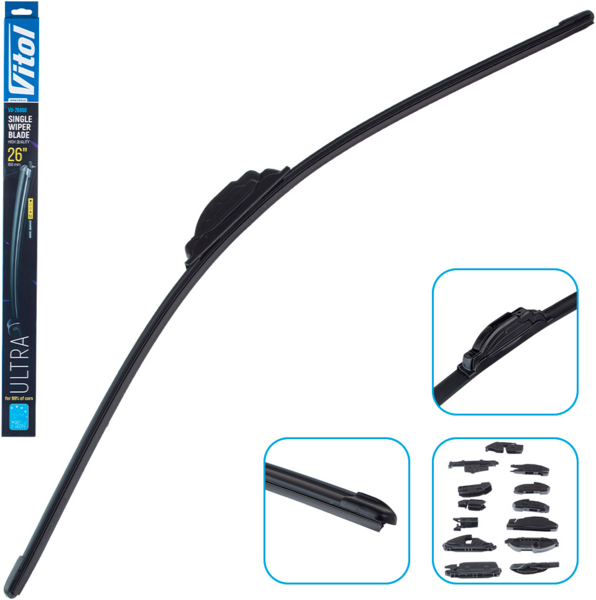 О надежности товаров vitol говорят более 20-летний опыт на рынке Украины и лояльные клиенты. Приобретая бескаркасную щетку стеклоочистителя vitol ultra 26, Вы будете готовы к любым вызовам автомира.