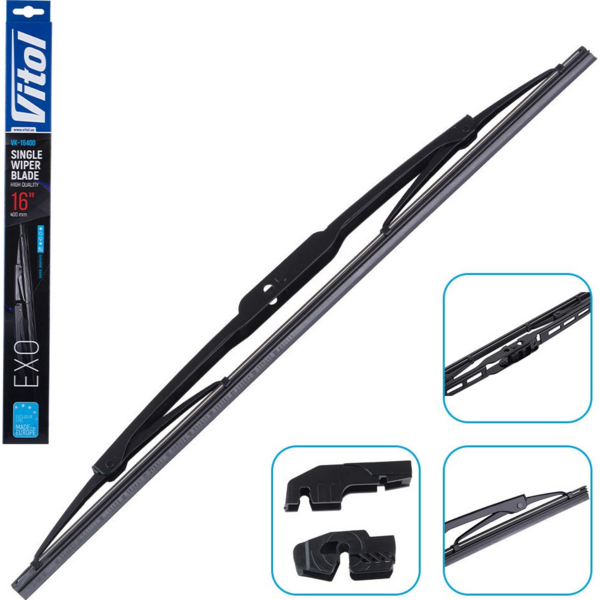 Щетки стеклоочистителя Exo от Vitol - это каркасные дворники, конструкция которых обеспечивает оптимальную жесткость во время работы.