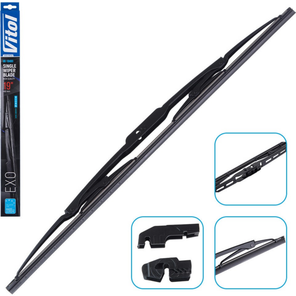 Щетки стеклоочистителя Exo от Vitol - это каркасные дворники, конструкция которых обеспечивает оптимальную жесткость во время работы.