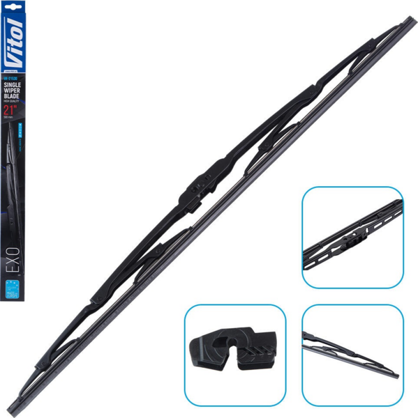 Щетки стеклоочистителя Exo от Vitol - это каркасные дворники, конструкция которых обеспечивает оптимальную жесткость во время работы.