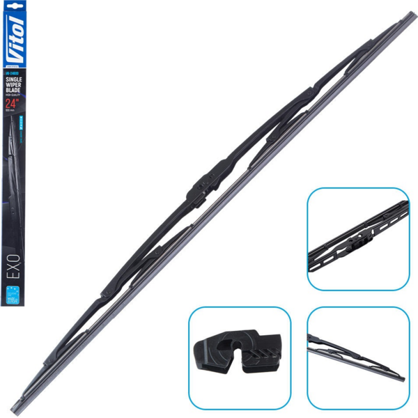 Щетки стеклоочистителя Exo от Vitol - это каркасные дворники, конструкция которых обеспечивает оптимальную жесткость во время работы.