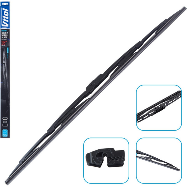 Щетки стеклоочистителя Exo от Vitol - это каркасные дворники, конструкция которых обеспечивает оптимальную жесткость во время работы.