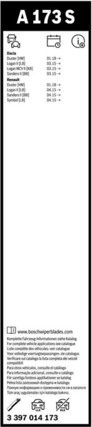 Описание Щетки стеклоочистителя Bosch Aerotwin A173S бескаркасные 550мм/475мм 2шт (3397014173) (69581000815)
