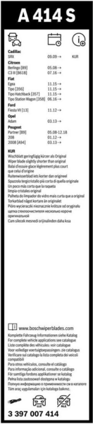 Описание Щетки стеклоочистителя Bosch Aerotwin A414S бескаркасные 650мм/400мм 2шт (3397007414) (695283)