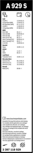 Описание Щетки стеклоочистителя Bosch Aerotwin A929S бескаркасные 600мм/475мм 2шт (3397118929) (465238)