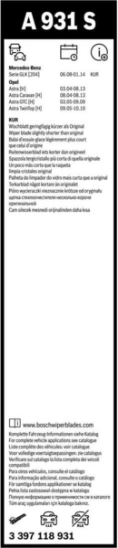 Отзывы и вопросы о Щетки стеклоочистителя Bosch Aerotwin A931S бескаркасные 550мм/450мм 2шт (3397118931) (465270)