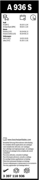 - Щетки стеклоочистителя Bosch Aerotwin A936S бескаркасные 600мм/475мм 2шт (3397118936) (535205)