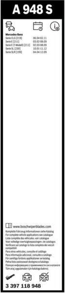 Описание Щетки стеклоочистителя Bosch Aerotwin A948S бескаркасные 650мм 2шт (3397118948) (645207)