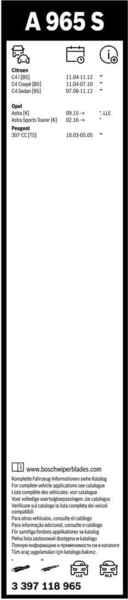 Дворники Bosch Aerotwin изготавливаются из высококачественных материалов с применением современных технологий. Основой их конструкции является эластичная пластина, обеспечивающая равномерный прижим к ветровому стеклу независимо от его кривизны. Резинка очистителя, являющаяся основной рабочей деталью дворника, сделана из многокомпонентной резины с добавлением натурального каучука и графитовым напылением. Это исключает скрипы и проскальзывание во время работы, а также предотвращает царапанье ветрового стекла. Они совместимы с автомобилями Citroen, Opel, Peugeot.