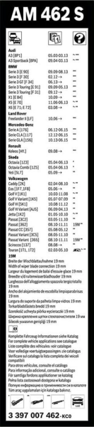 Характеристики Щетки стеклоочистителя Bosch Aerotwin AM462S бескаркасные 600мм/475мм 2шт (3397007462) (695282)