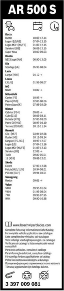- Щетки стеклоочистителя Bosch Aerotwin AR500S бескаркасная 500мм 2шт (3397009081) (46001736)