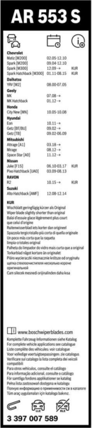 Отзывы и вопросы о Щетки стеклоочистителя Bosch Aerotwin AR553S бескаркасные 550мм/340мм 2шт (3397007589) (46002335)