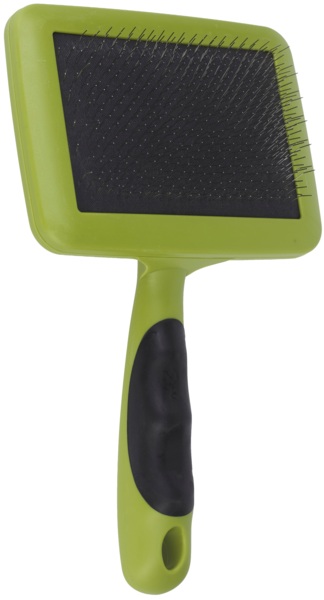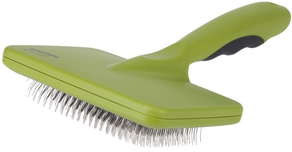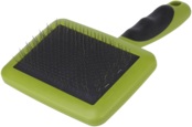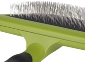 - Мягкая металлическая щетина с гибкими тонкими зубцами деликатно вычесывает подшерсток и не травмирует кожу;